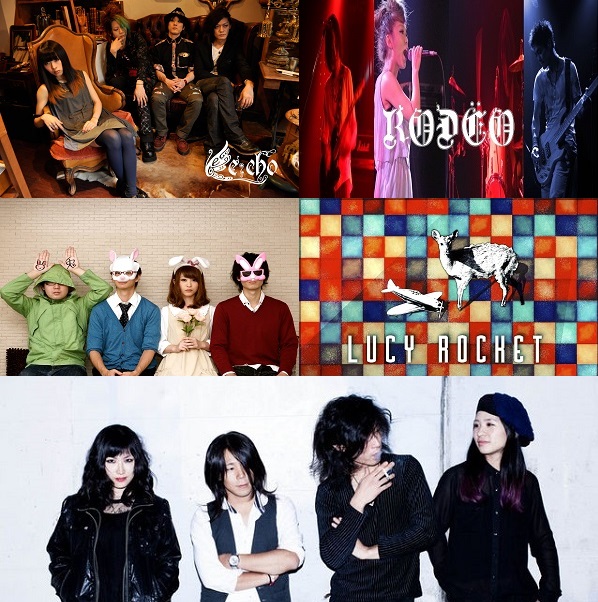 2014年6月1日(日) 【ライヴタイトル】 『Music Touch +』 “魅惑の女性ボーカルバンドLIVE!” 【会場】 mismatch@池袋 【時間】 OPEN 16:30 START 17:00 CLOSE 21:30 【料金】 予約・前売 2500円(1drink代別途) 当日 3000円(1drink代別途) 【出演者】 ヨザクラスピカ / RODEO / e:cho / LUCY ROCKET / ふじこ / アドレナリンセッション |