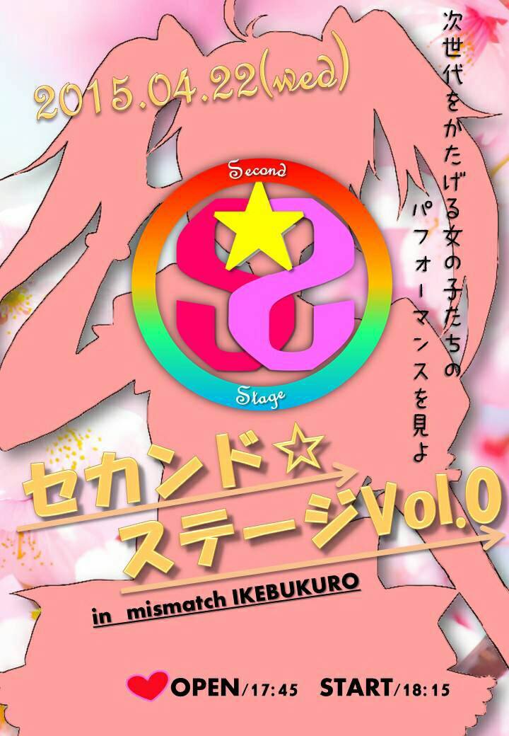 2015年4月22日(水) 【イベントタイトル】 『セカンド☆ステージvol.0』 【会場】 mismatch@池袋 【時間】 OPEN 17:45 START 18:15 【料金】 前売 / 当日 2500円(1drink代別途) |