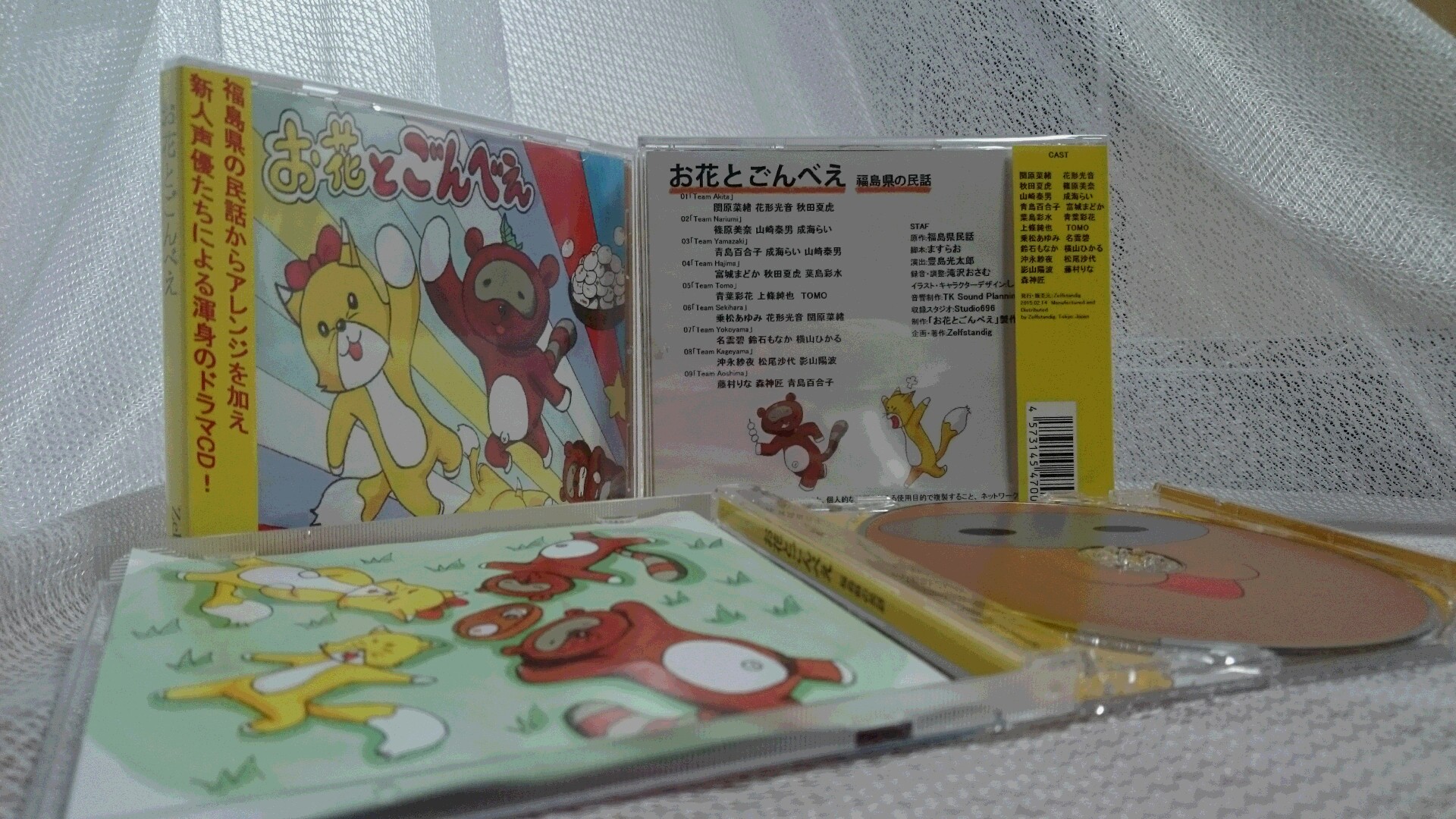 | 2015年2月14日 日本民話シリーズ第1弾! 福島県民話 『お花とごんべえ』 本日、全国発売されました! 新人声優中心の渾身のボイスドラマCD! 是非、ご視聴ください。 PVもアップ致しておりますのでご覧ください。 【ボイスドラマCD】 『お花とごんべえ』 【価格】 1500円(税込) ※送料は別途かかります 【購入】 Zelfstandig 【販売】 TSUTAYA / TOWER RECORDS / 山野楽器 / 楽天ブックス / amazon / Billboard / 紀伊國屋書店 / セブンネット / ヨドバシカメラ / DeNAショッピング / 他オンラインショップで販売中! 【出演者】 関原奈緒 / 花形光音 / 秋田夏虎 / 篠原美奈 / 山崎泰男 / 成海らい / 富城まどか / 葉島彩水 / 青葉彩花 / 上條純也 / TOMO / 乗松あゆみ / 名雲碧 / 鈴石もなか / 横山ひかる / 沖永紗夜 / 松尾沙代 / 影山陽波 / 藤村りな / 森神匠 / 青島百合子 |