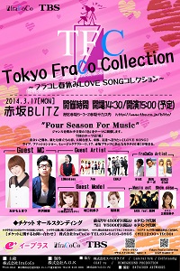 2014年3月17日(月) 【ファッションショー&ライヴ】 『Tokyo Fraco Collection』 【会場】 赤坂BLITZ 【時間】 OPEN 14:30 START 15:00 【料金】 前売 4500円(drink代別途) 当日 5000円(drink代別途) 【出演者】 MC おかもとまり 芦沢教授 アーティスト LGMonkees / 7cm / EMALF / H!dE / 西矢ターボ / MERCI STAR / STEAL-I / SADA feat.釼神 その他 モデル 松本めぐみ / 張春 / 大滝ナタシャ / 香月梨子 / 西媛乃 / 村松あゆみ / 珠璃 / 恵中瞳 / 黒崎瑠璃香 / 大越和香 / 愛内心愛 / 深沢いちか / 井上せいら / あんじゅ / 宮川のな / 坂本愛理 / 右近詩織 / 新井もあ / 茉那 / RIE / 小梛順子 / Arethe / 坂口莉果子 / 瑠璃奈 その他 |