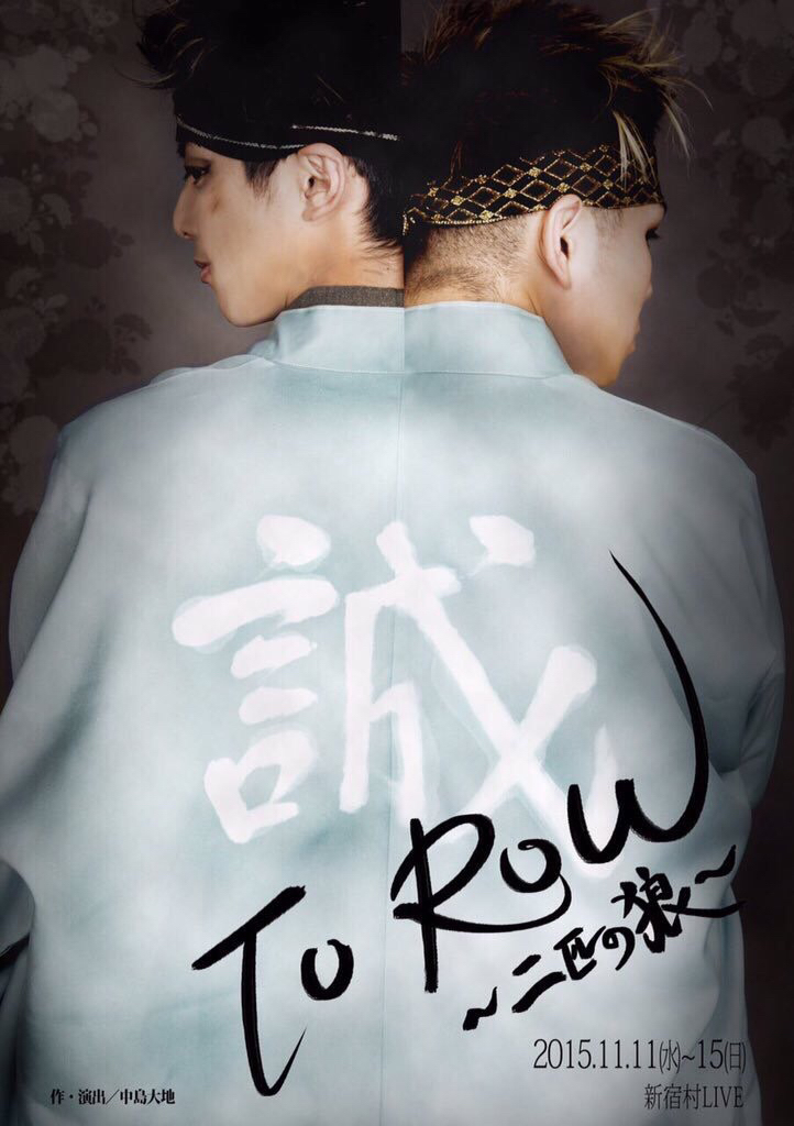 2015年11月11日(水)~15日(日) 【舞台】 TRIBEプロデュース公演 「ToRow〜二匹の狼〜」 【あらすじ】 作・演の中島大地が『新撰組』を独自の目線から描いた。 すべての歯車が狂ったのか… はたまた歯車がかみ合ったのか… 坂本龍馬が放った一言。 '正義とは' 新撰組隊士の胸に問いかける。 あなたにとって『正義』とは? 【会場】 新宿村LIVE 【時間】 11日 19:00〜 12日 14:00〜☆ / 19:00〜 13日 14:00〜☆ / 19:00〜 14日 13:00〜 / 18:00〜 15日 12:00〜 / 16:00〜 ☆が付いてるところはアフターイベントあり アフタートークメンバー 12日 MC…中島・船木 上田・飯山・赤間・鵜飼・新田・北村 13日 MC…中島・結城 上田・汐崎・葉山・船木・フォンチー・栞菜 【料金】 前売 5000円 当日 5500円 (チケット発売中!) イープラス / カンフェティ 【出演者】 中島大地 / 船木政秀 / 結城駿(以上TRIBE) / 上田悠介 / 飯山裕太 / フォンチー / 新田健太 / 鵜飼主水(ASSH) / 栞菜 / 赤間直哉 / 北村健人 / 鷲尾直人 / 豊田幸樹 / 松本渉 / ヒロヤ(ASSH) / 浅野匡 / 入江悠 / 金村香織 / 小菅怜衣 / 葉山昴 / 汐崎アイル / 宮下奏 |